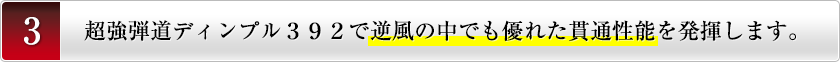 - 目の覚めるような理想的な高弾道と、力強く風にも負けずに真っすぐ飛んでいく強弾道を生み出す、こだわりのディンプル数392に設定し、優れた貫通性能を実現しました。